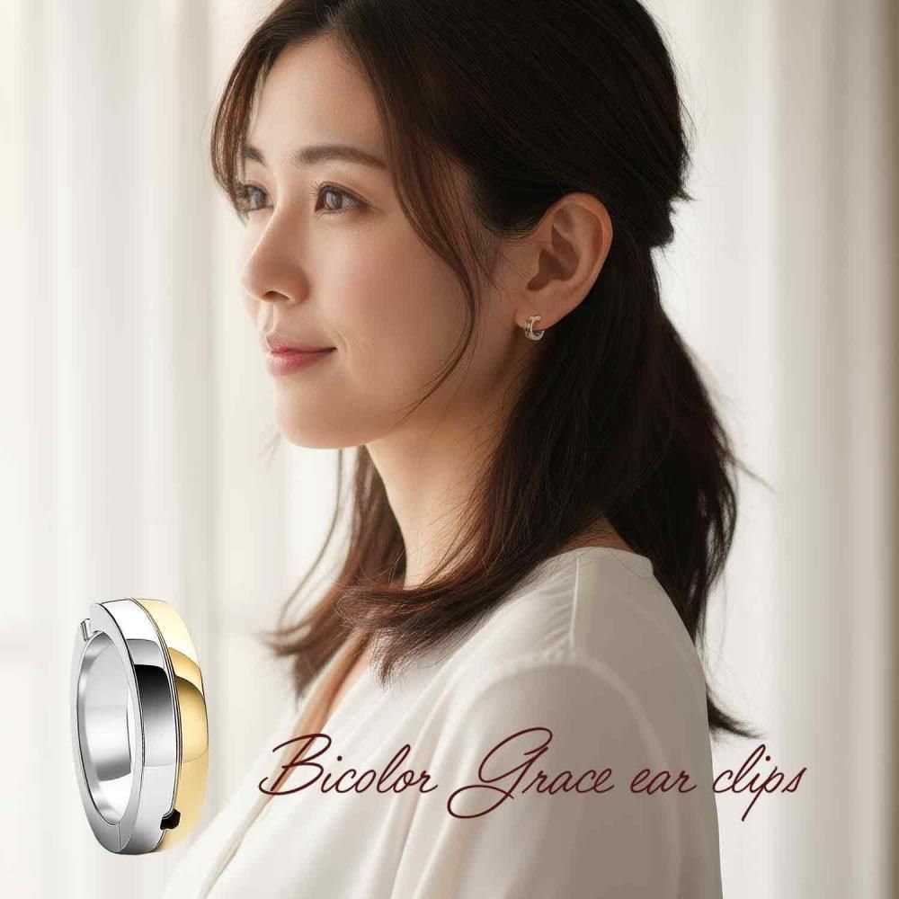 バイカラーグレースイヤークリップは、サージカルステンレス製でシンプルなデザインが特徴のイヤークリップです。バイカラーやユニセックスなデザインで、どんなファッションにもマッチします。軽量なので長時間付けていても疲れにくく、気軽におしゃれを楽しめます。